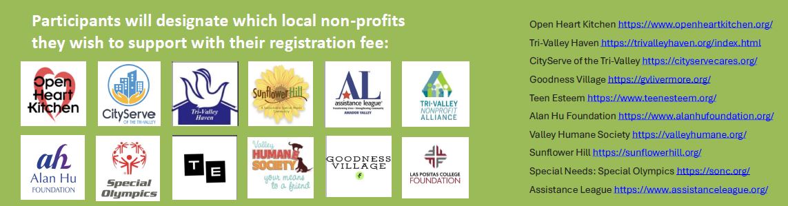 This isn't just a race; it's your chance to suit for for a fun walk and run that champions education, health, wellness and supports the incredible organizations of the Tri-Valley Non-Profit Alliance.